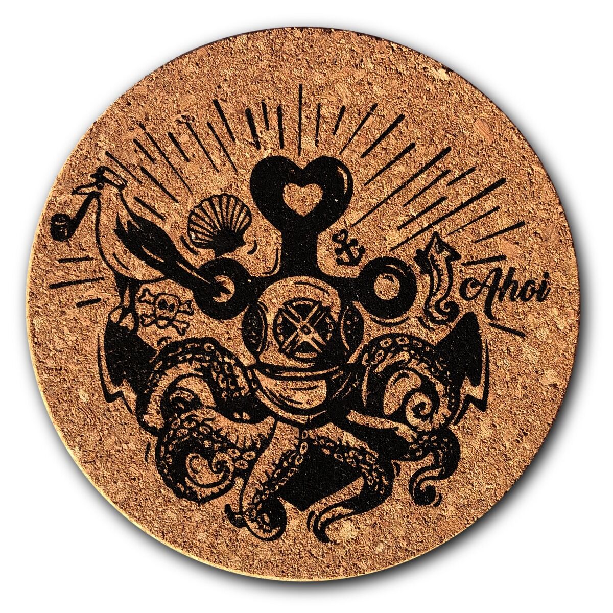 Nachhaltiges Produkt aus Korkeiche gewonnen und mit einem Handsiebdruck in Liebe einzeln produziert.
